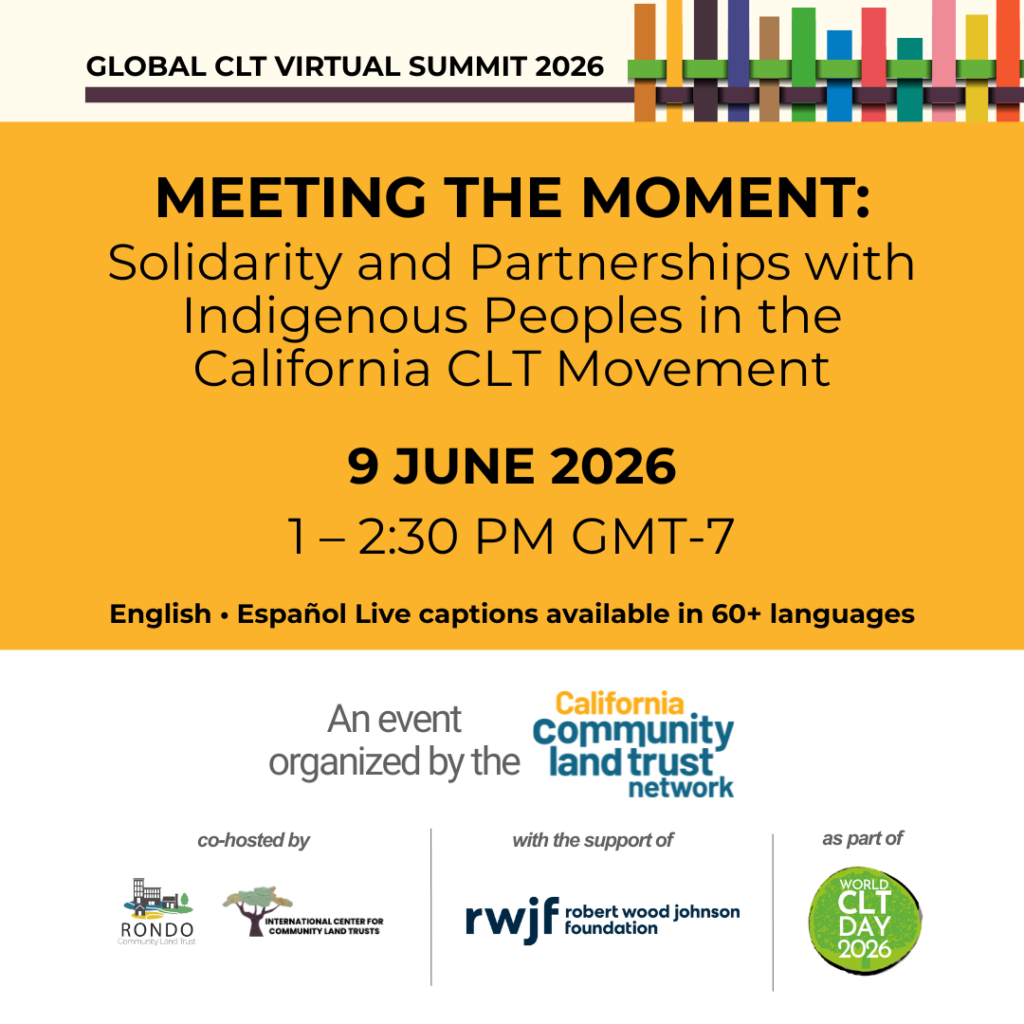 El 9 de junio, la California Community Land Trust Network organizará una sesión centrada en el intercambio de experiencias sobre cómo los CLTs están construyendo relaciones de solidaridad con comunidades indígenas en California.
