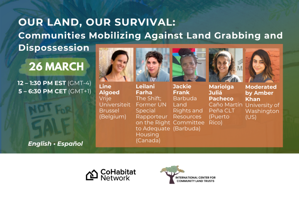 El Centro Internacional de Fideicomisos Comunitarios de la Tierra te invita a una conversación centrada en Nuestra tierra, nuestra supervivenciade la Dra. Line Algoed y publicado por Terra Nostra Press. Basándose en casos de Barbuda y Puerto Rico tras los huracanes de 2017, el libro muestra cómo los sistemas de tierras comunales se convierten en poderosas herramientas para resistir el acaparamiento de tierras, el desplazamiento de comunidades y el capitalismo del desastre.