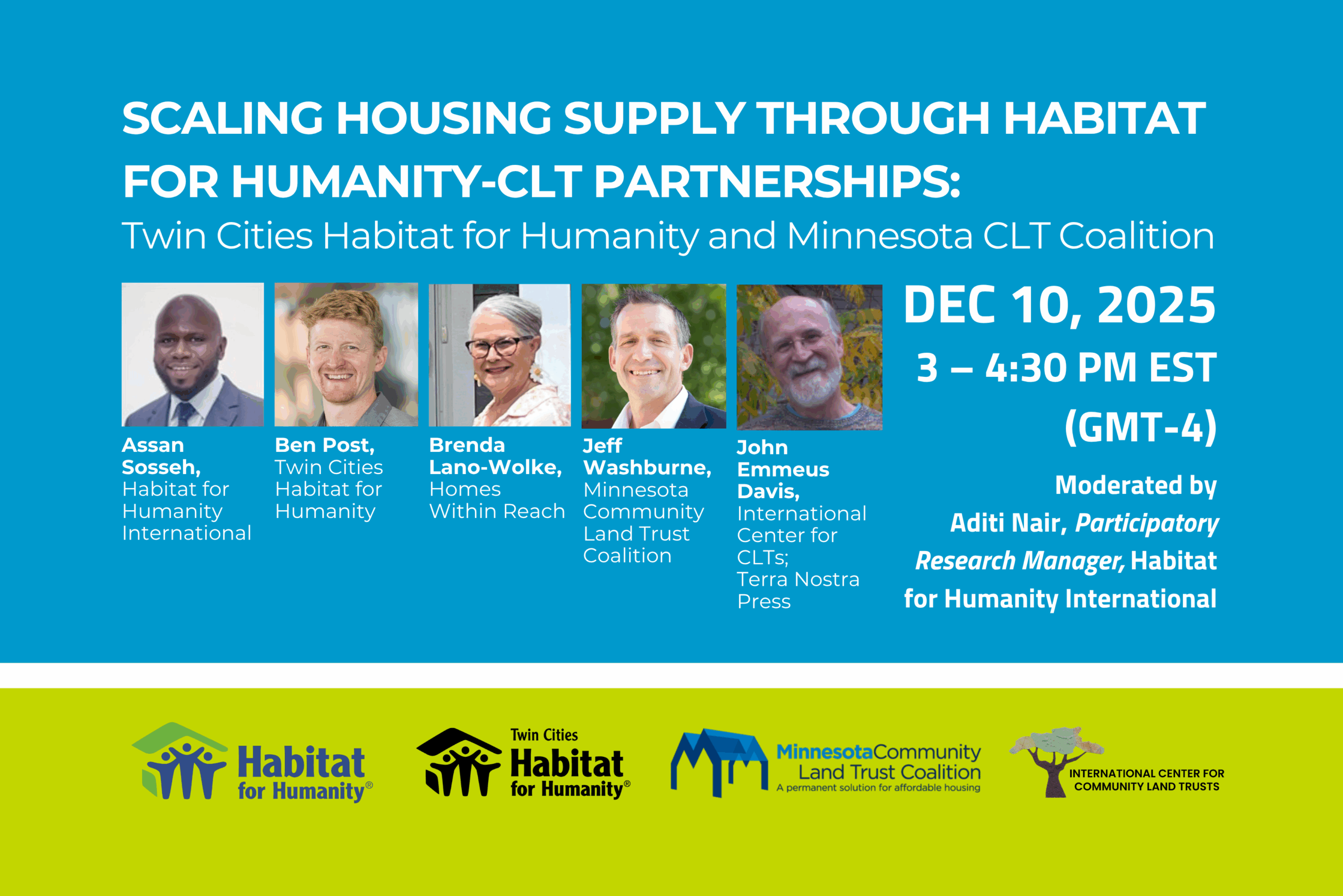 Webinar Description The second webinar in the Lasting Affordability Webinar Series by Habitat for Humanity International will explore strategies for building strong, sustainable partnerships with Community Land Trusts (CLTs) to advance lasting affordability and housing preservation. Drawing on lessons from Twin Cities Habitat for Humanity’s collaborations with Homes Within Reach, other CLT partners, and the broader coalition building work […]