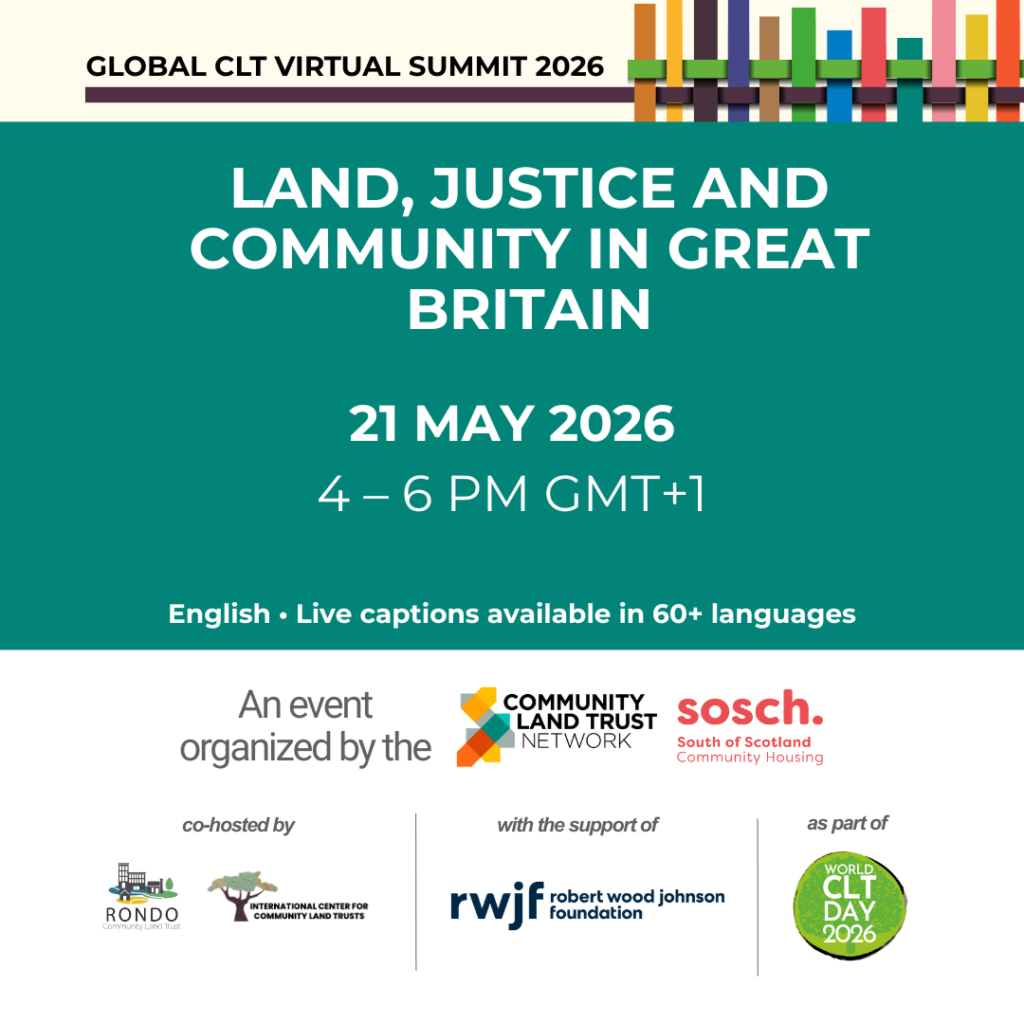 Este evento faz parte da Cúpula Virtual do Community Land Trust (CLT) Global 2026, uma série de seis semanas de eventos on-line, de 5 de maio a 10 de junho. Explore o programa completo e registre-se para mais eventos aqui.